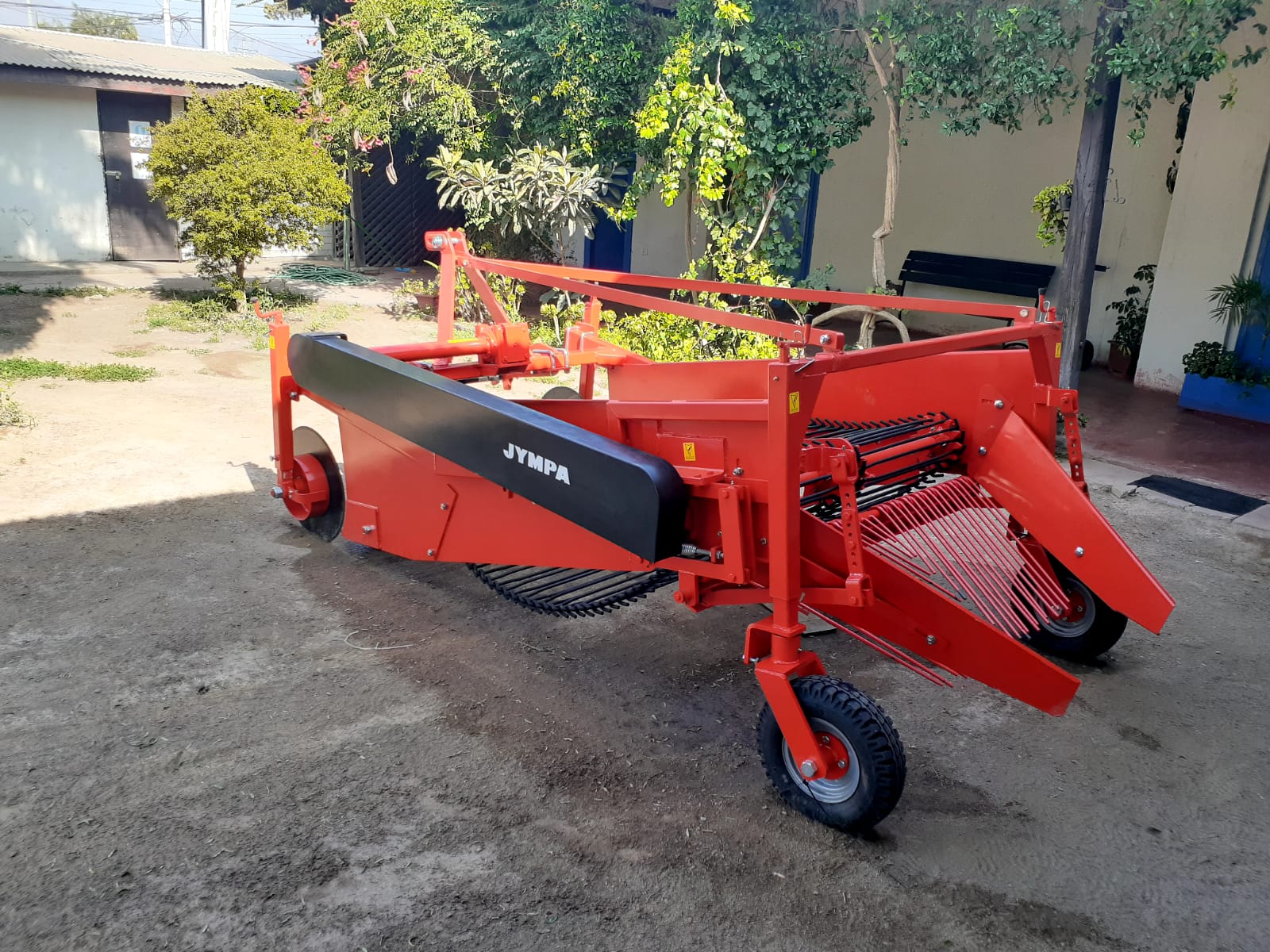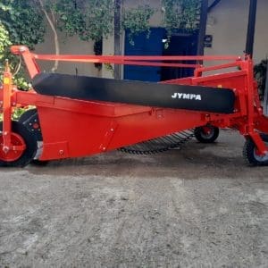 La arrancadora JYMPA está diseñada para recolectar todo tipo de tubérculos: zanahorias, cebollas, ajos con o sin ramas y papas, arrancando toda la producción de 2 camellones mediante dos amplias cuchillas que luego depositan el producto sobre las esteras de transporte, donde piñones vibradores limpian la tierra y la devuelven al suelo, mientras el producto es transportado suavemente hacia las parrillas de zarandas traseras. Las papas ya limpias y sin malezas llegan al suelo sin dañarse en el recorrido, mejorando notablemente la limpieza y quedando todas a la vista y ordenadas en el suelo a un