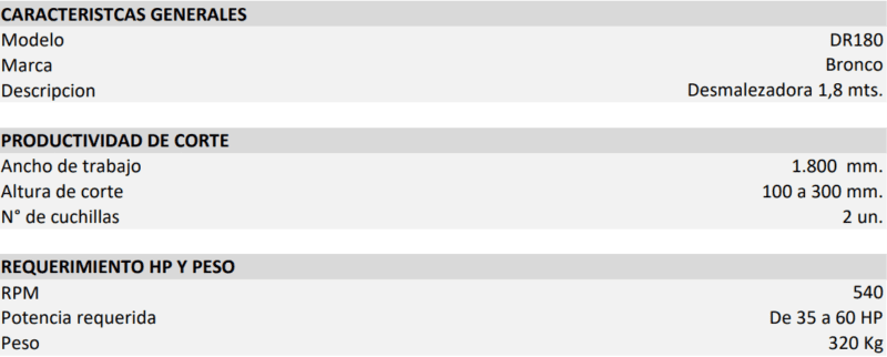 DESMALEZADORA 1,8 MTS BRONCO