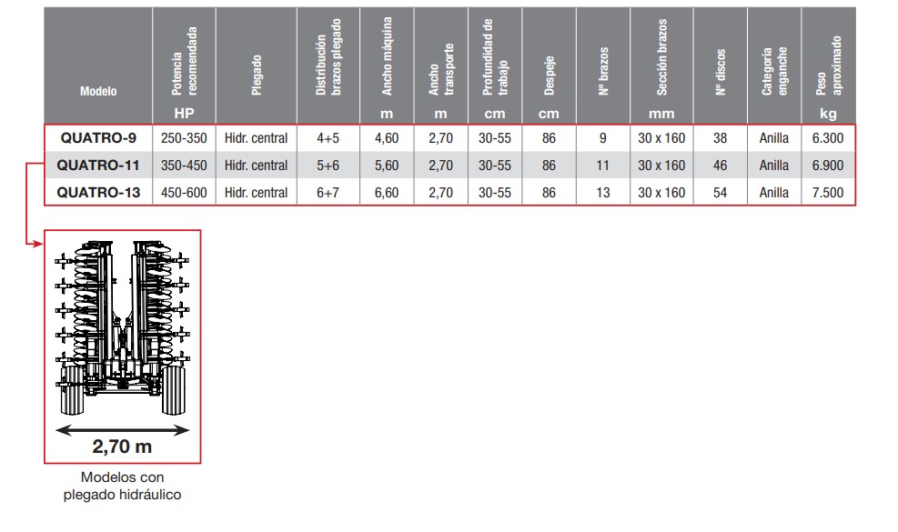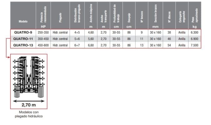 • Plegado hidráulico para transporte.