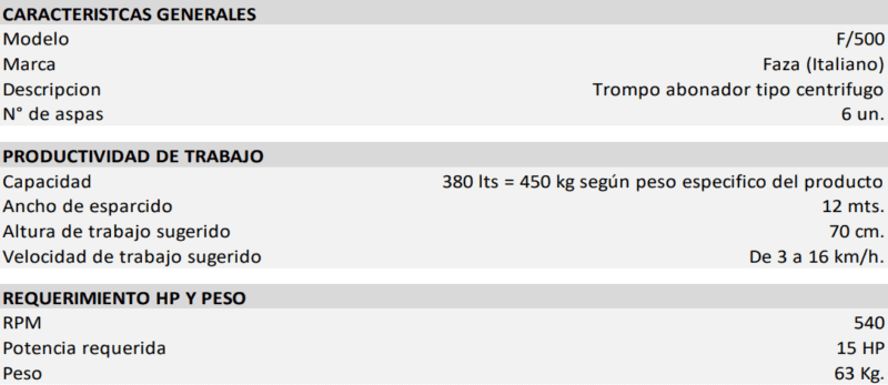 TROMPO ABONADOR CENTRIFUGO F/500 FAZA